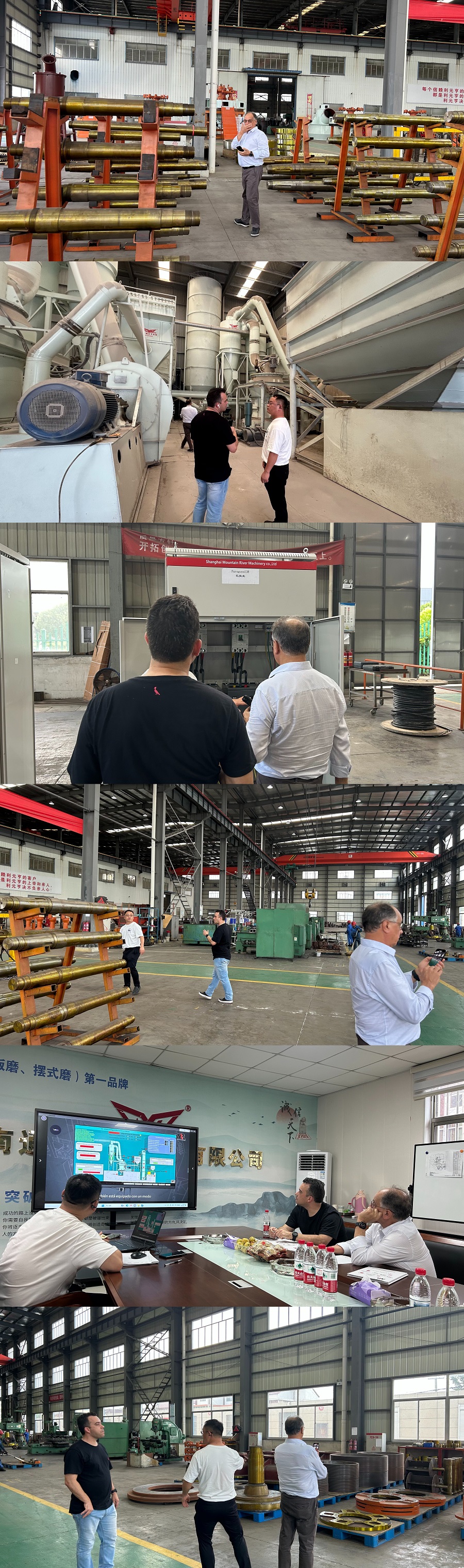 Alle 9:30, la delegazione arrivò alla fabbrica intelligente di Liyuanheng Raymond Mill. Il direttore generale Mr. Ding li ha accolti personalmente e ha stretto calorosamente la mano con il direttore degli appalti della compagnia mineraria camerunica. Il cliente cameruniano ha espresso: "Il nostro progetto a Kribi Port deve urgentemente risolvere il problema di intasamento dell'argilla. Non vediamo l'ora di essere la soluzione di Liyuanheng!"