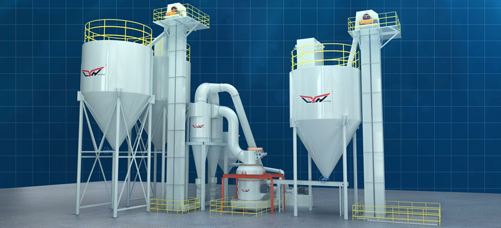 Serie LYH998 La nuova linea di produzione ambientale di macinazione ambientale è composta principalmente da un frantoio di mascella, ascensore, silo di stoccaggio, trasportatore a cinghia (con rimozione del ferro), mulino a mazza (con separatore), ventola di tiraggio indotta centrifuga, filtro della polvere di polso, collettore di polvere di ciclone, assorbente del compagnia di vetrina, trasporto a vite e altre attrezzature.